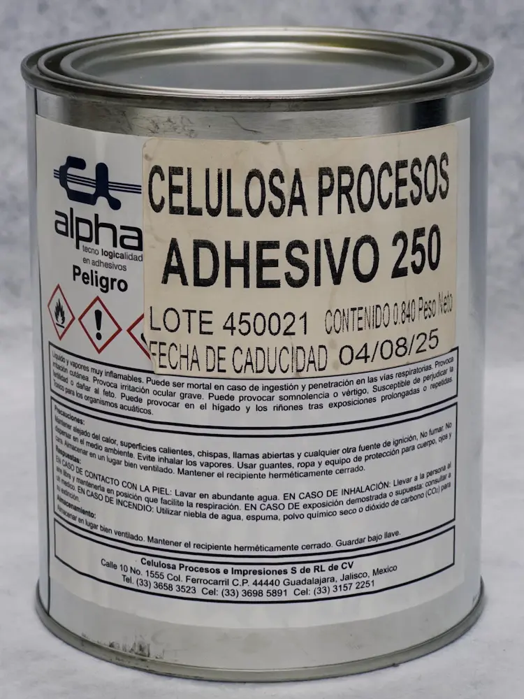 El Adhesivo 250 Celulosa está formulado para garantizar una fijación firme y duradera en procesos de serigrafía. Se utiliza principalmente en la colocación de mallas a marcos metálicos o de madera, proporcionando gran adherencia y resistencia a solventes comunes. Su secado rápido optimiza tiempos de producción, asegurando estabilidad en tirajes largos.