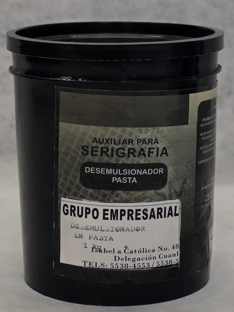 El Desemulsionador en pasta se utiliza para recuperar pantallas de serigrafía eliminando emulsiones secas o endurecidas. Su acción rápida permite limpiar sin dañar la malla, aumentando la vida útil de los marcos.
