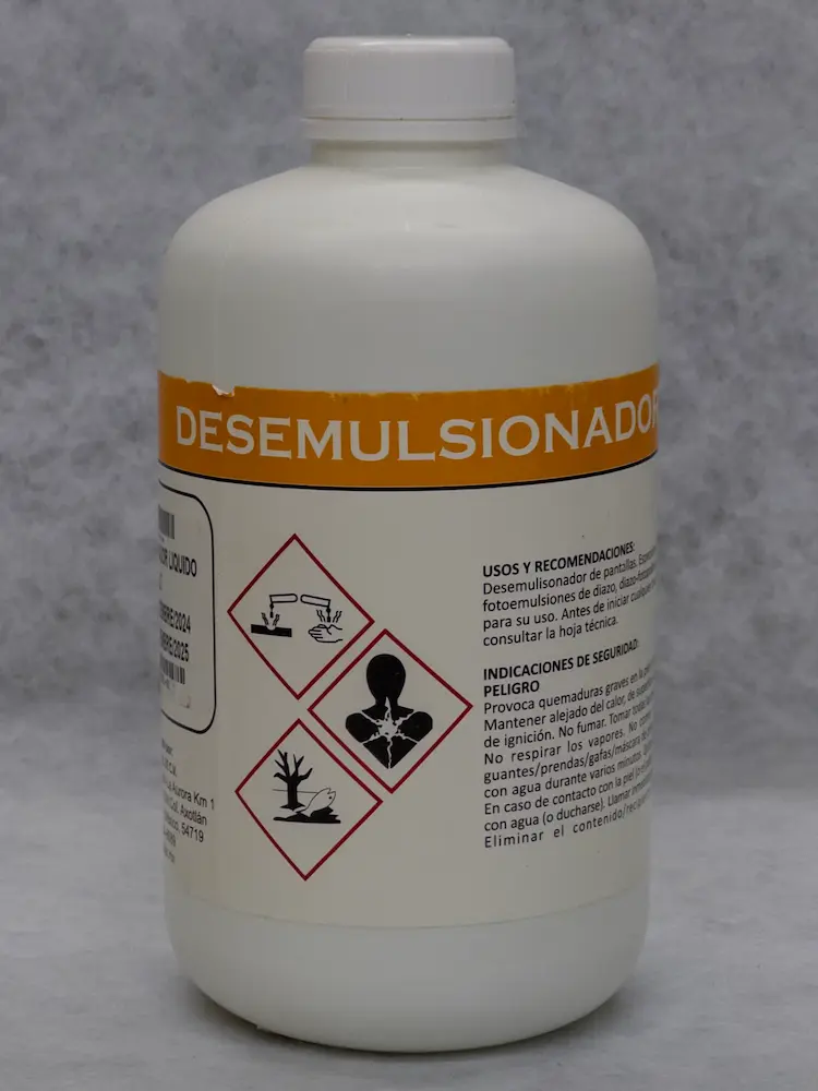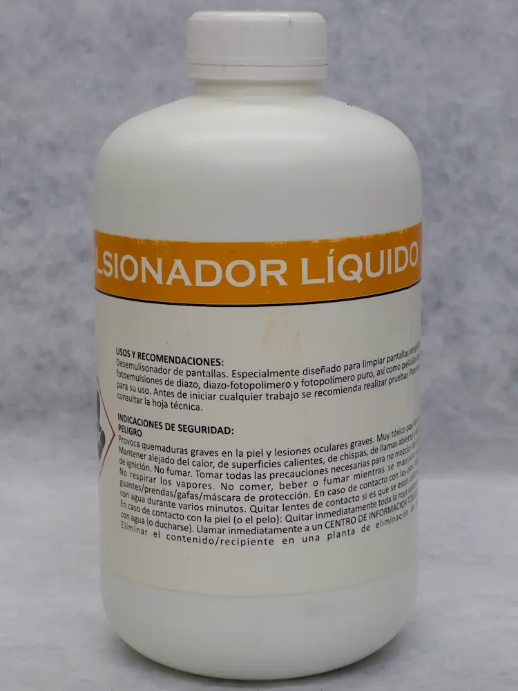 Recuperador de pantallas de muy alta concentración. Remueve cualquier tipo de emulsión en menos de 3 minutos, para obtener excelentes resultados desengrase previamente la emulsión y recupere con agua a presión.